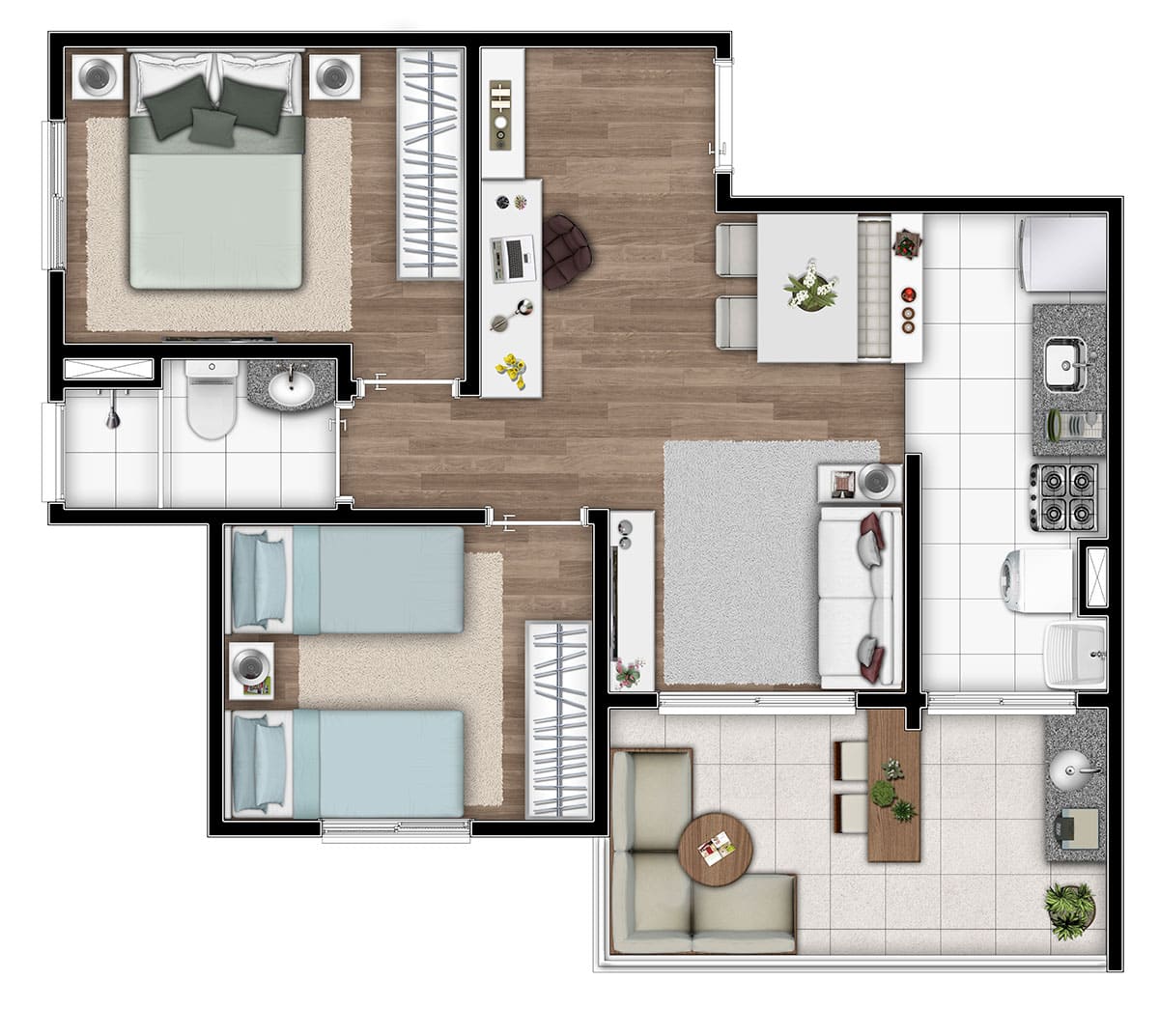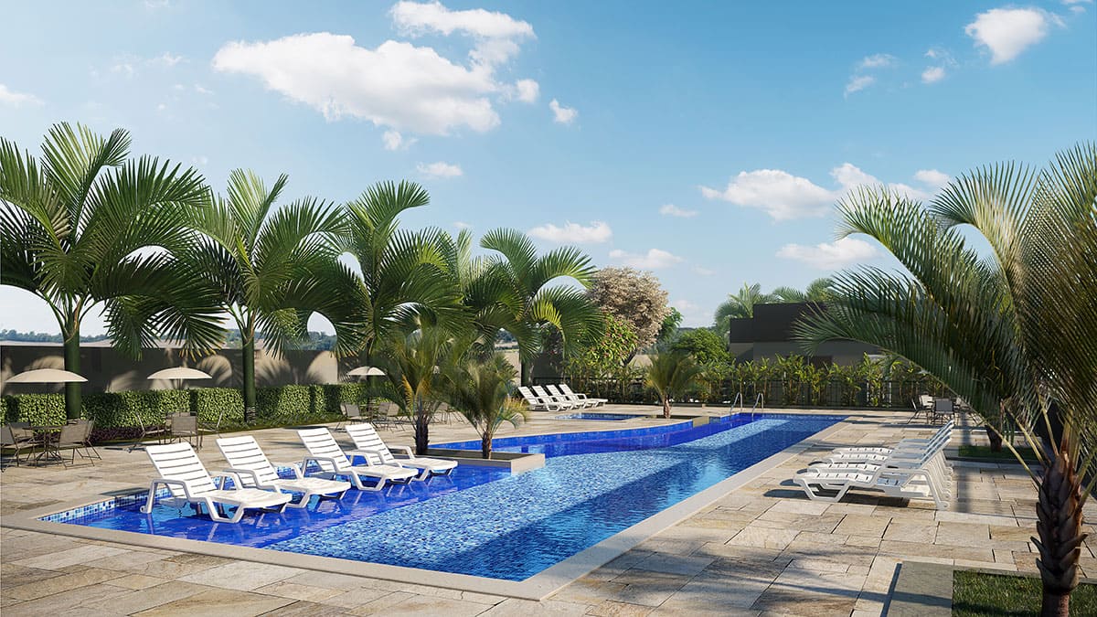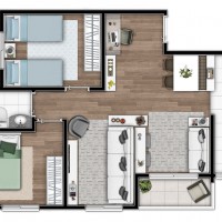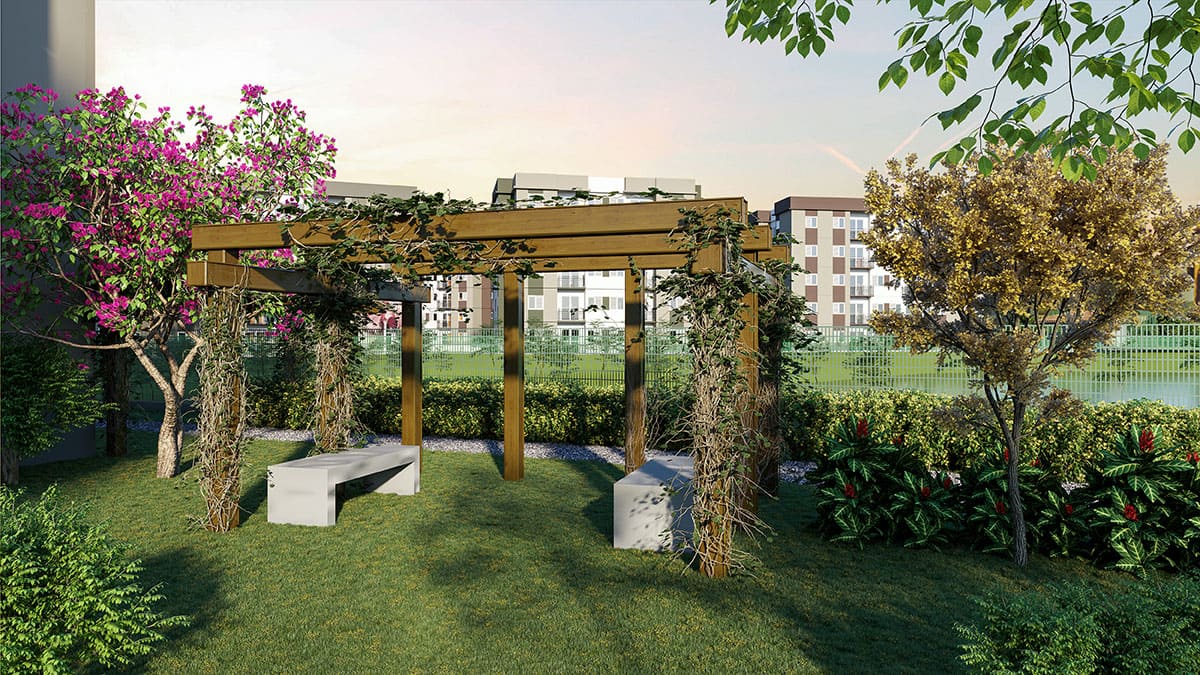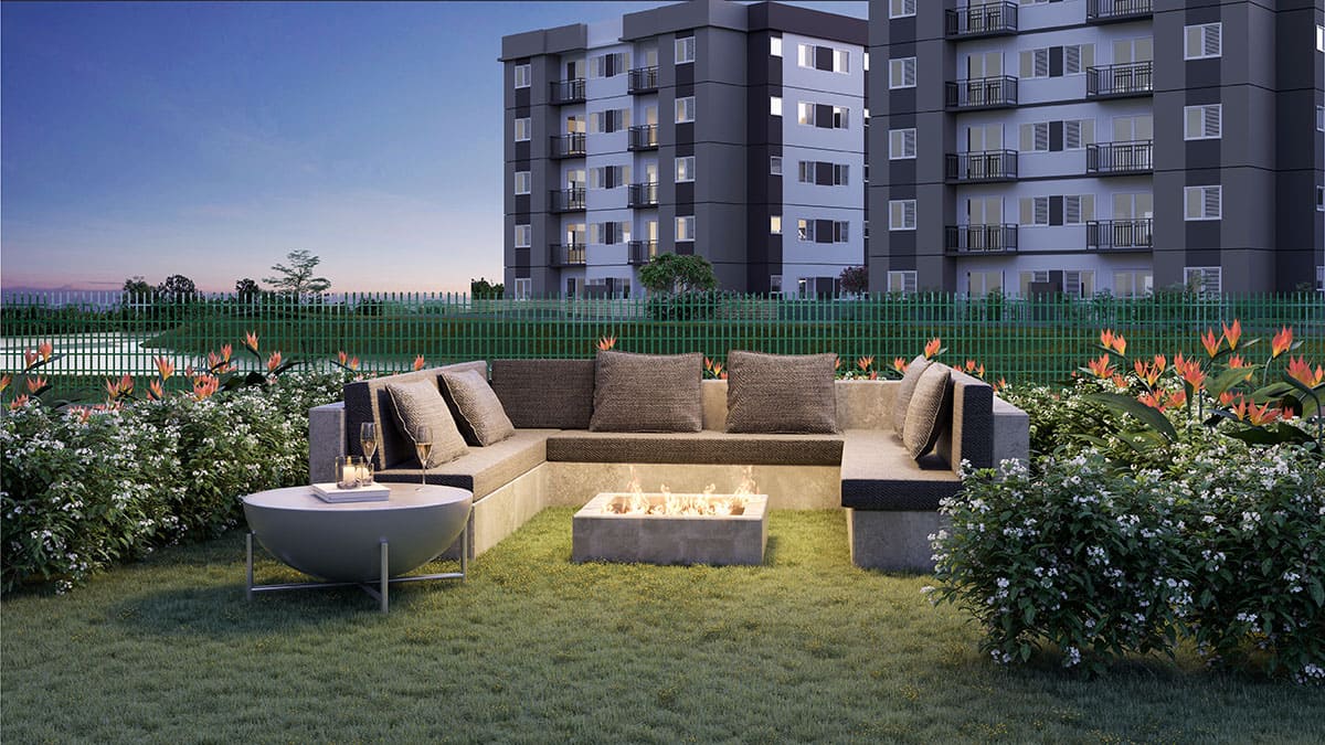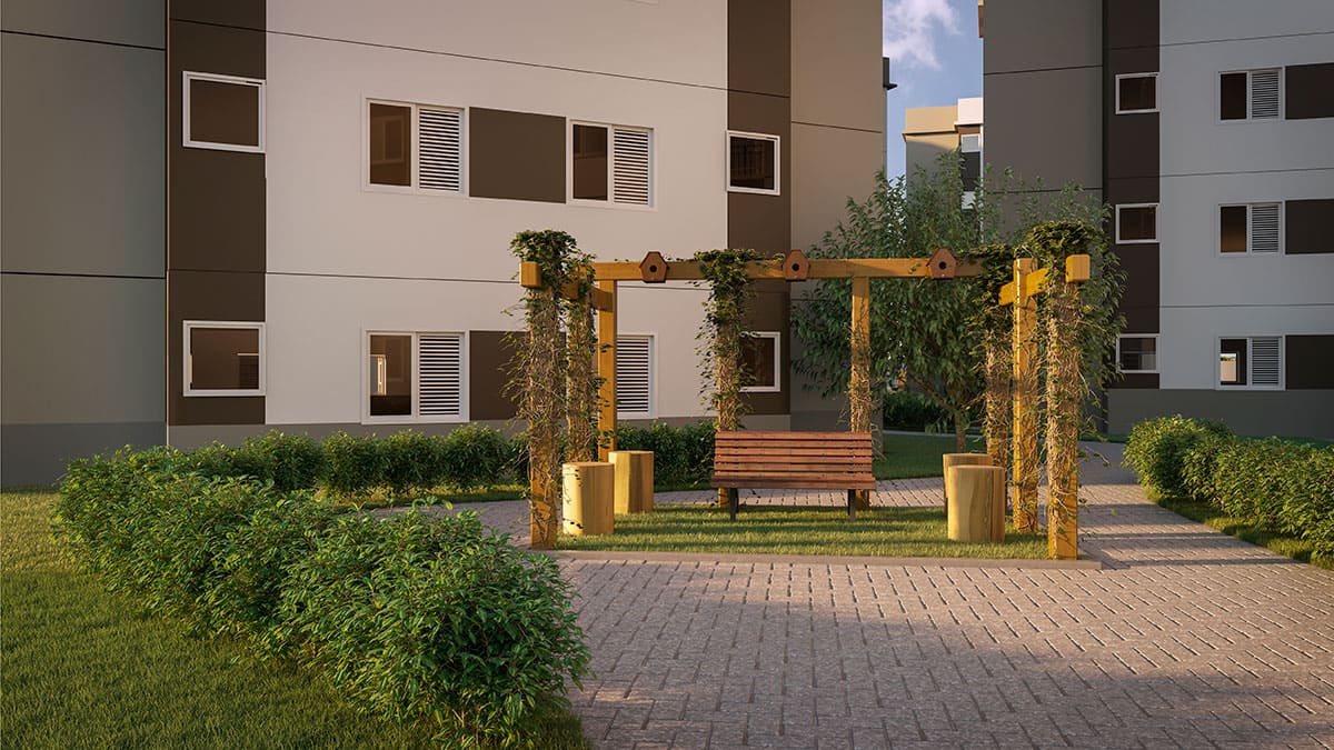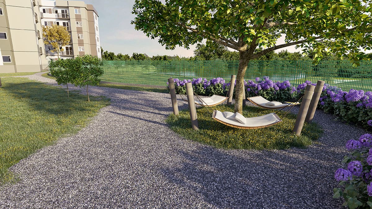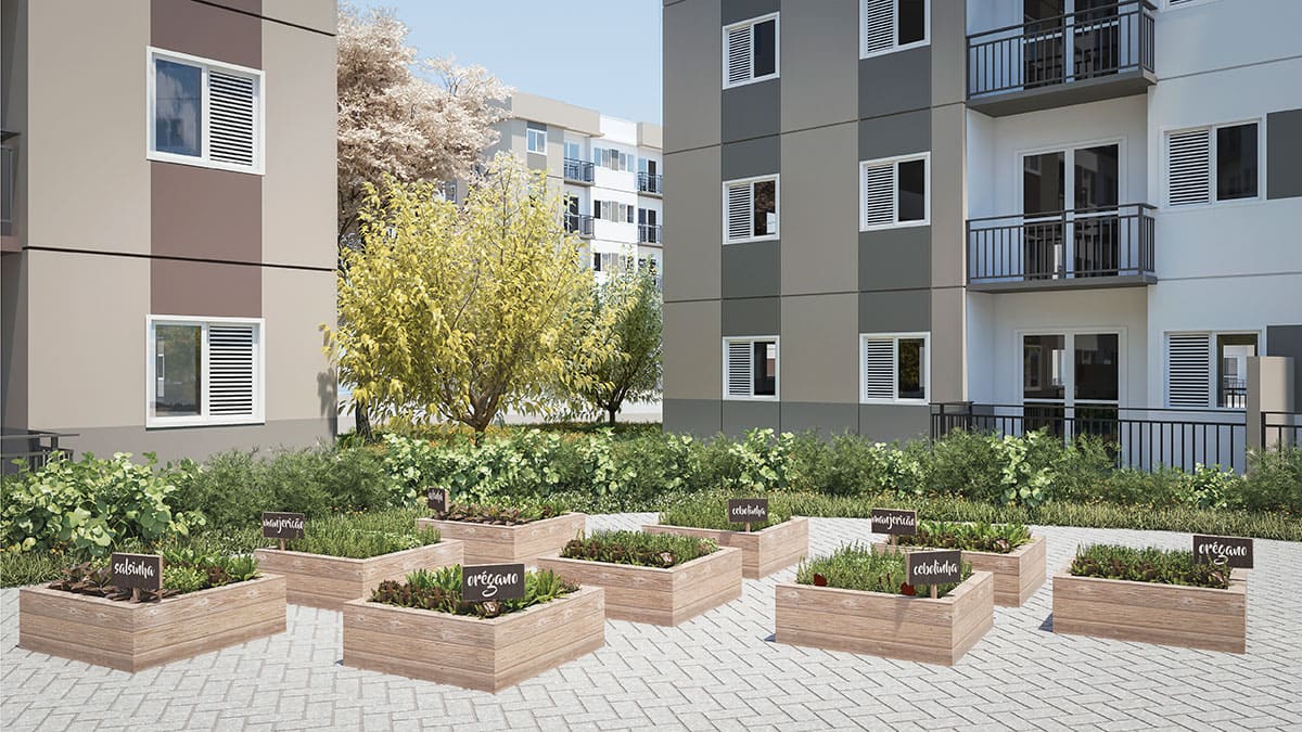 - Tipologia: 43m² a 64m², 1, 2 e 3 dormitórios, living com 2 ambientes, varanda / varanda garden, 1 ou 2 vagas por apartamento